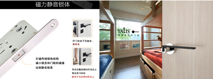 磁力静音门锁融入于学生的生活,小伙伴生病了或是早睡了,再也不怕晚宿舍的同学开门声打扰到了。雅丽斯生产的磁力静音门锁比传统门锁关门减噪百分之60,更呵护睡眠质量。