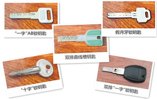 B级锁钥匙为平板钥匙,有双排弹子槽,跟A级锁不同的地方在于钥匙面多了一排弯弯曲曲不规则的线条。锁芯主要类型为3种,电脑双排锁芯、双排月牙锁芯、双面叶片锁芯。防技术性开启时间5分钟内,互开率高。通过强扭工具,1分钟内可以开启锁芯。一般现在小区里多数统一配置的锁芯多为防技术开启低的A级或B级防盗锁芯。按照国家标准规定,A级锁芯防技术开启时间为1分钟,B级锁芯防技术开启时间为5分钟。而短短的几分钟,根本无法对抗现在小偷使用的高智能开锁工具,常见的A级防盗锁芯在反锁的状态下,小偷使用锡纸配合工具,短短几秒就可以开启。