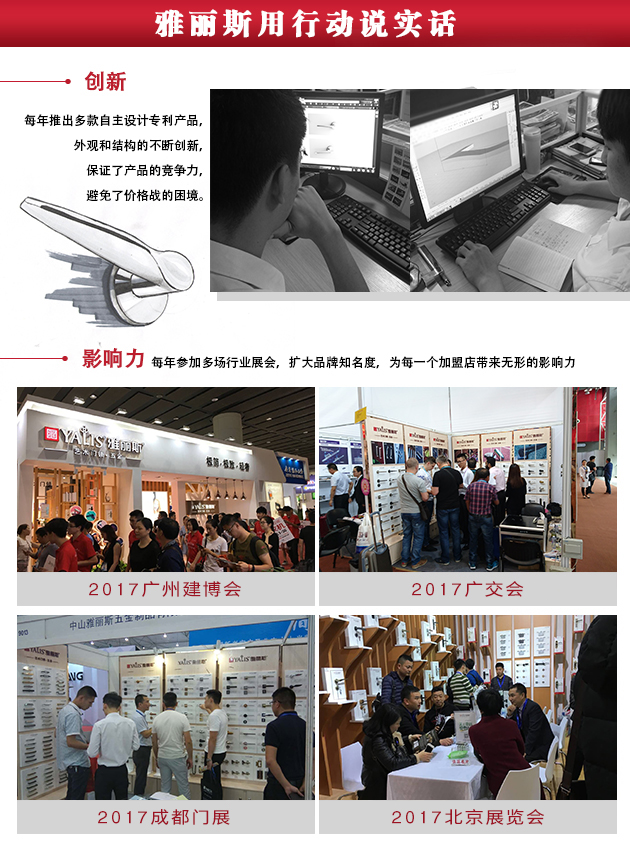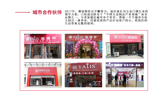 凭着十多年的门锁行业品牌经验,我们很高兴为您提供出色的产品和一站式的服务。地处广东中山五金基地,雅丽斯一直坚持不懈地追求和改良,兑现我们对客户的承诺,赢得客户的信任。