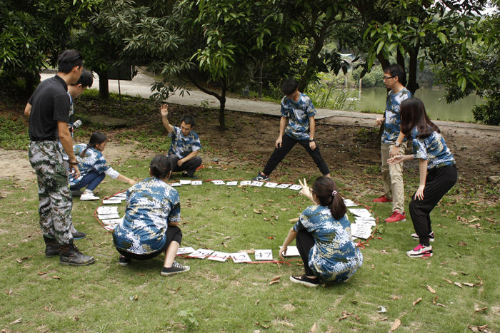 (极限时速)按照规则将圆圈里的纸牌按照由小到大的顺序拍完即完成任何,这个团队合作项目磨合了团队合作精神,让队员们明白协调分工和责任意识的重要性。
