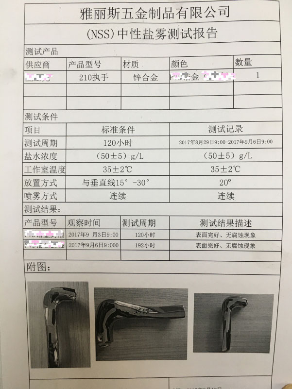 上一批盐雾测试的雅丽斯锁具,表面光亮如新