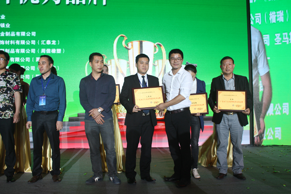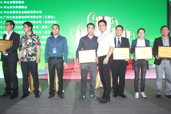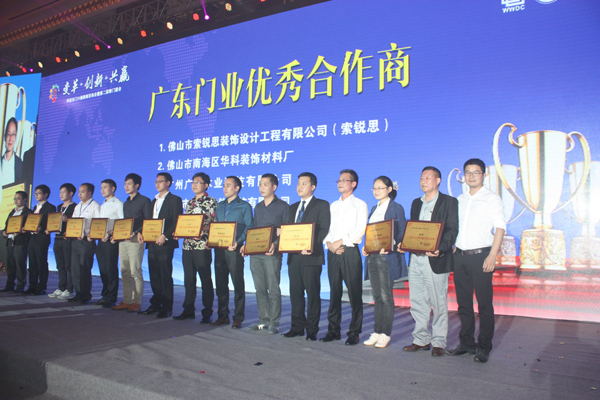 雅丽斯五金总经理李博先生作为颁奖嘉宾为获得“广东木门五金配件优秀品牌”企业颁奖