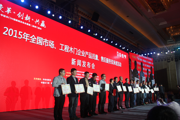2015年3月23日,一年一度的中国门业盛会”2015年全国市场工程木门企业产品质量、售后服务双承诺活动新闻发布会暨中国木门豪门盛会”在广州香格里拉大酒店圆满落幕。