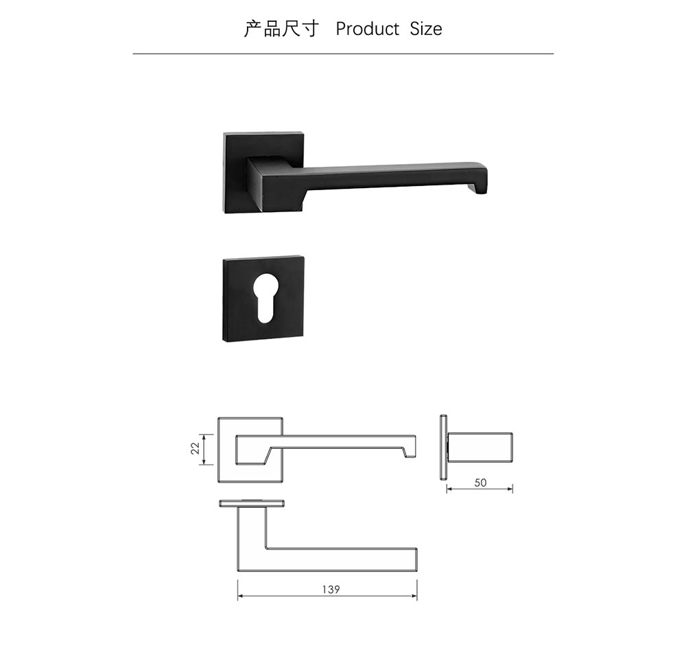 产品品牌:雅丽斯 产品名称:锌合金分体执手锁 产品型号:79207 材质:锌合金 表面处理:哑铬、亮金、亮铬、扫砂枪、黑古铜、哑镍 尺寸:139mm*50mm 锁芯盖:50mm*50mm 适用门厚:45~55mm 适用范围:入户门、通道门、室内门 适用门型:木门、金属门