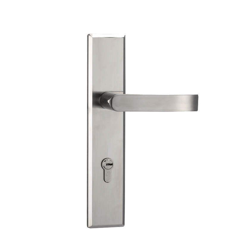 产品品牌:雅丽斯 产品名称:不锈钢面板锁 产品型号:AS6080 材质:不锈钢304 表面处理:拉丝 尺寸:123mm*55mm 锁芯盖:260mm*48mm 适用门厚:37~50mm 适用范围:入户门、通道门、室内门 适用门型:木门、金属门