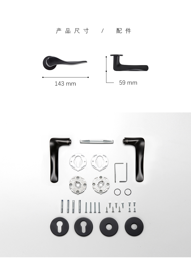 产品品牌:雅丽斯 产品名称:锌合金分体执手锁 产品型号:74282 材质:锌合金 表面处理:哑黑、亮铬 尺寸:140mm*60mm 锁芯盖:50mm*50mm 适用门厚:45~55mm 适用范围:入户门、通道门、室内门 适用门型:木门、金属门