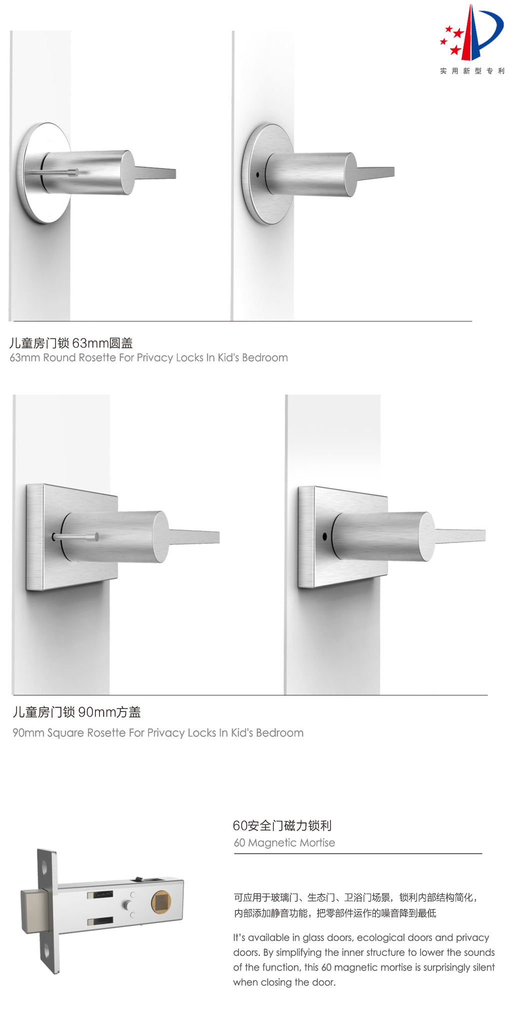 室内门解决方案是雅丽斯研发中心推出一系列极简五金锁具搭配木门和生态门的定制化方案。 意大利、北欧的极简室内门锁和当下的轻奢简约,是80后和90后所偏好的家居风格,雅丽斯作为极简空间门锁五金解决方案商,发挥自身十年研发简约执手锁的经验,真真正正地把五金锁具融入到极简整体家居当中。